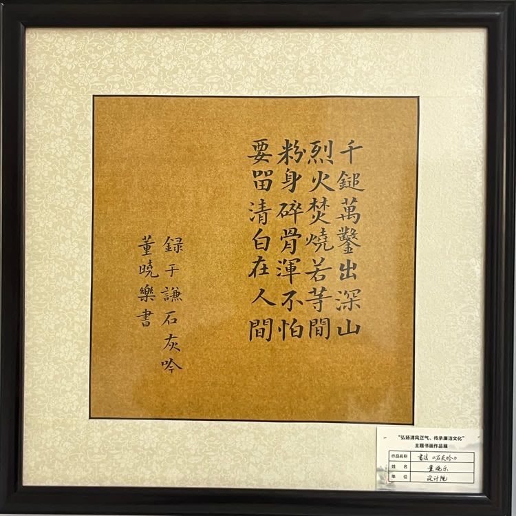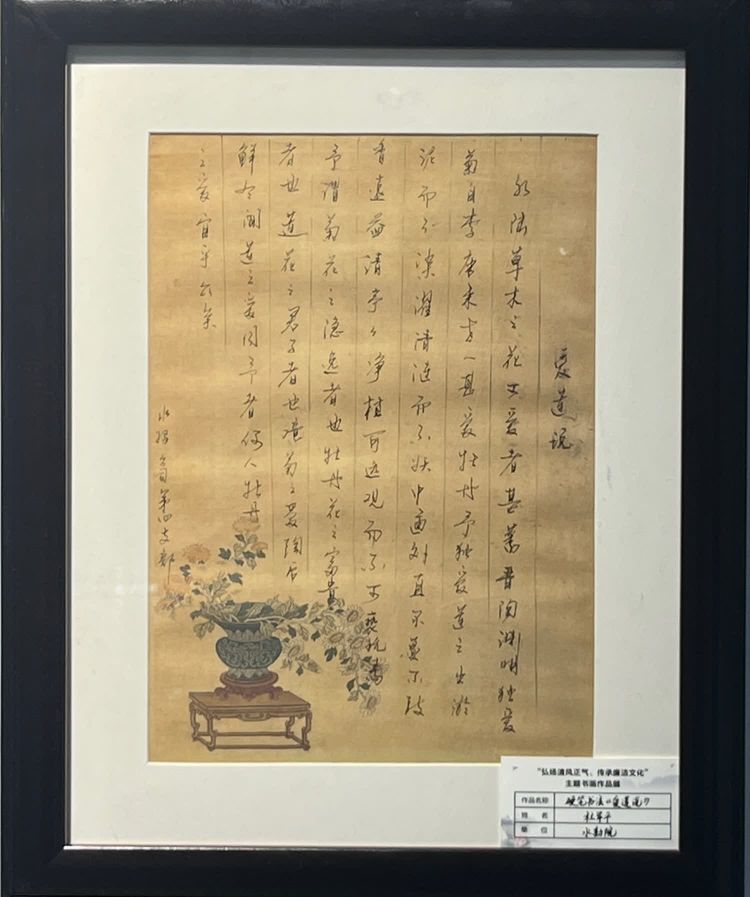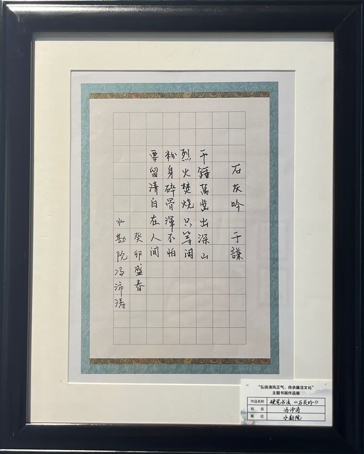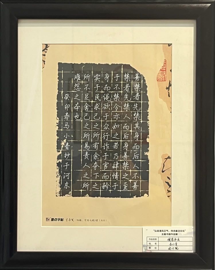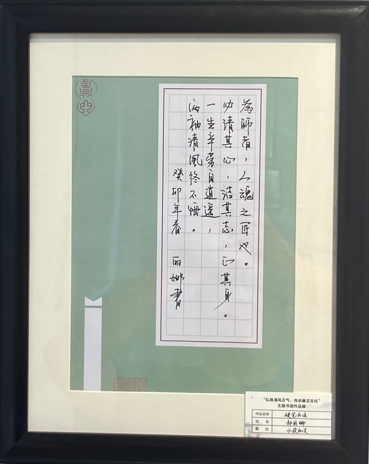 “清廉者,乃清正廉潔、大道直行、奉公守法也”“粉身碎骨渾不怕,要留清白在人間”“不要人夸好顏色,只留清氣滿乾坤”《清廉賦》、《石灰吟》、《墨梅》……一張張寫滿正氣的書法、一幅幅描繪廉潔的畫卷,傳遞著清正廉潔主旋律,弘揚著擔當實干正能量。