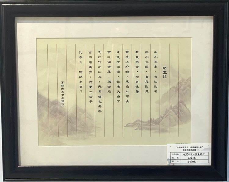 一幅幅寫滿正氣的書法、一幅幅描繪廉潔的畫卷,書畫展從籌備到展出歷時近20天,面向基層黨支部征集國畫、水彩畫、書法、攝影等作品80余件。參展作品內(nèi)容豐富、風格多樣,創(chuàng)作者們把廉潔自律、勤政為民、警示教育、廉潔家風等內(nèi)容融入作品中,充分體現(xiàn)廉潔文化的豐富內(nèi)涵,形象、生動、直觀地傳遞給參觀者,吸引廣大黨員干部及職工群眾駐足觀看。