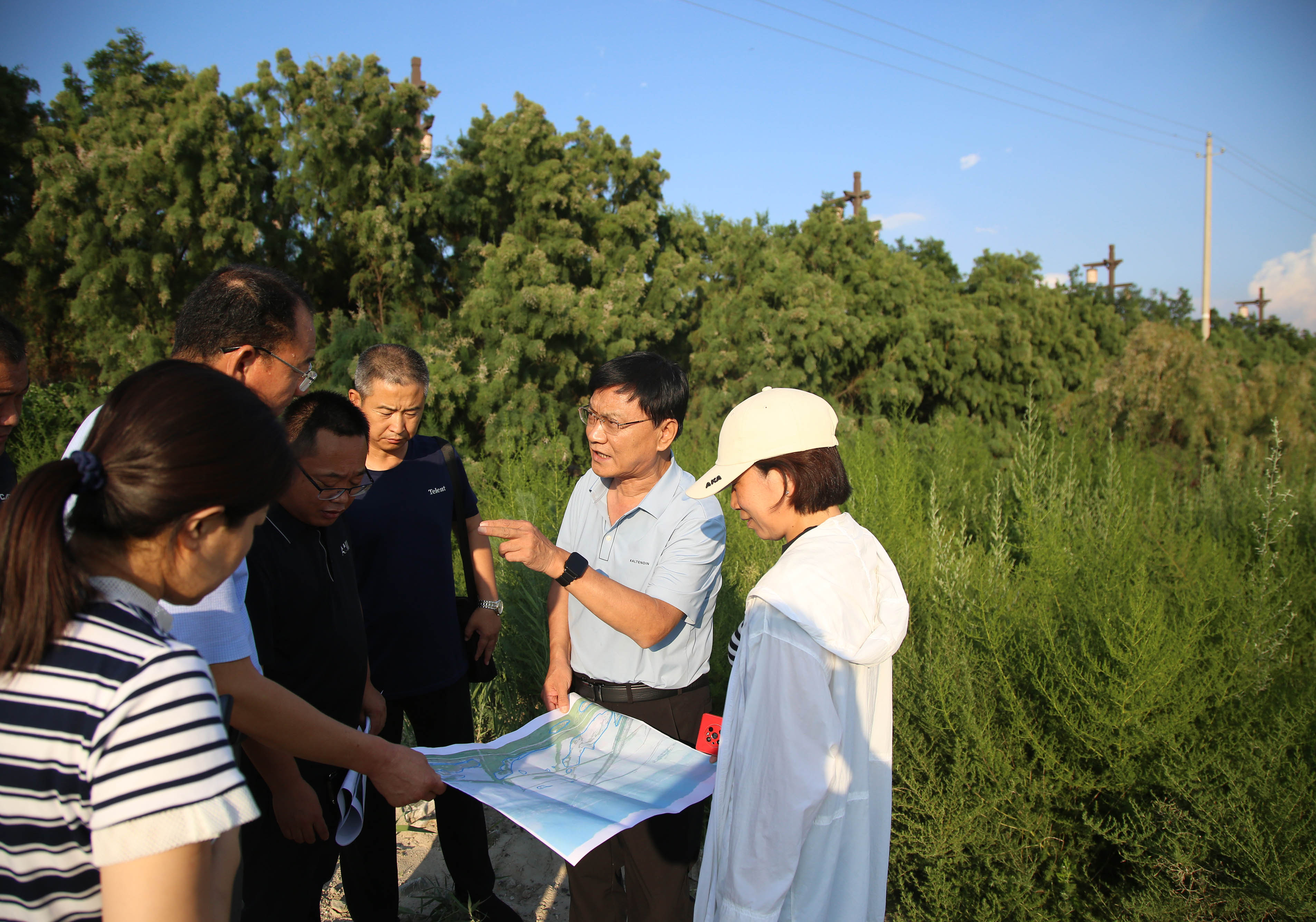 8月3日下午,為保證施工安全和工程質(zhì)量,加快施工進(jìn)度,進(jìn)一步優(yōu)化設(shè)計(jì)方案,公司董事長(zhǎng)兼總經(jīng)理崔作銘帶隊(duì)赴鹽池跨湖大道以西實(shí)地踏勘,現(xiàn)場(chǎng)研討施工方案。市水工局、鹽池項(xiàng)目相關(guān)負(fù)責(zé)人陪同檢查。