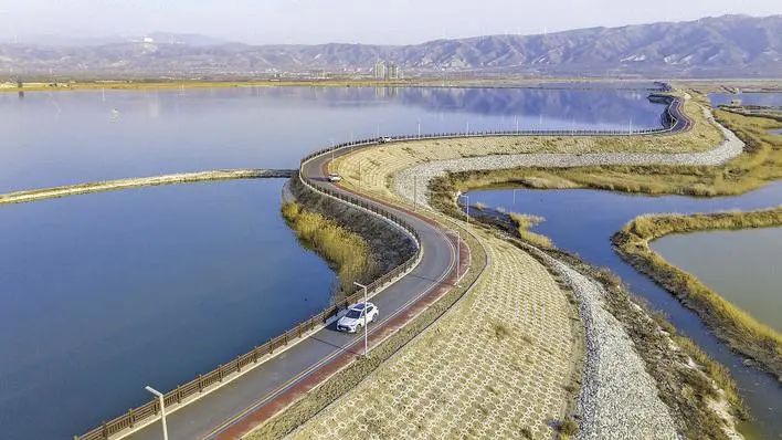 “內(nèi)外兼修”,鴨子池涅槃重生。站在池東新修的大壩觀景臺,兩側(cè)水域煙波浩渺、碧波蕩漾,成群的白鷺自由翱翔,將全線貫通的鴨子池環(huán)湖路與一堰之隔的七彩鹽湖環(huán)湖路相連,一幅天人合一的大美勝景令人心曠神怡!