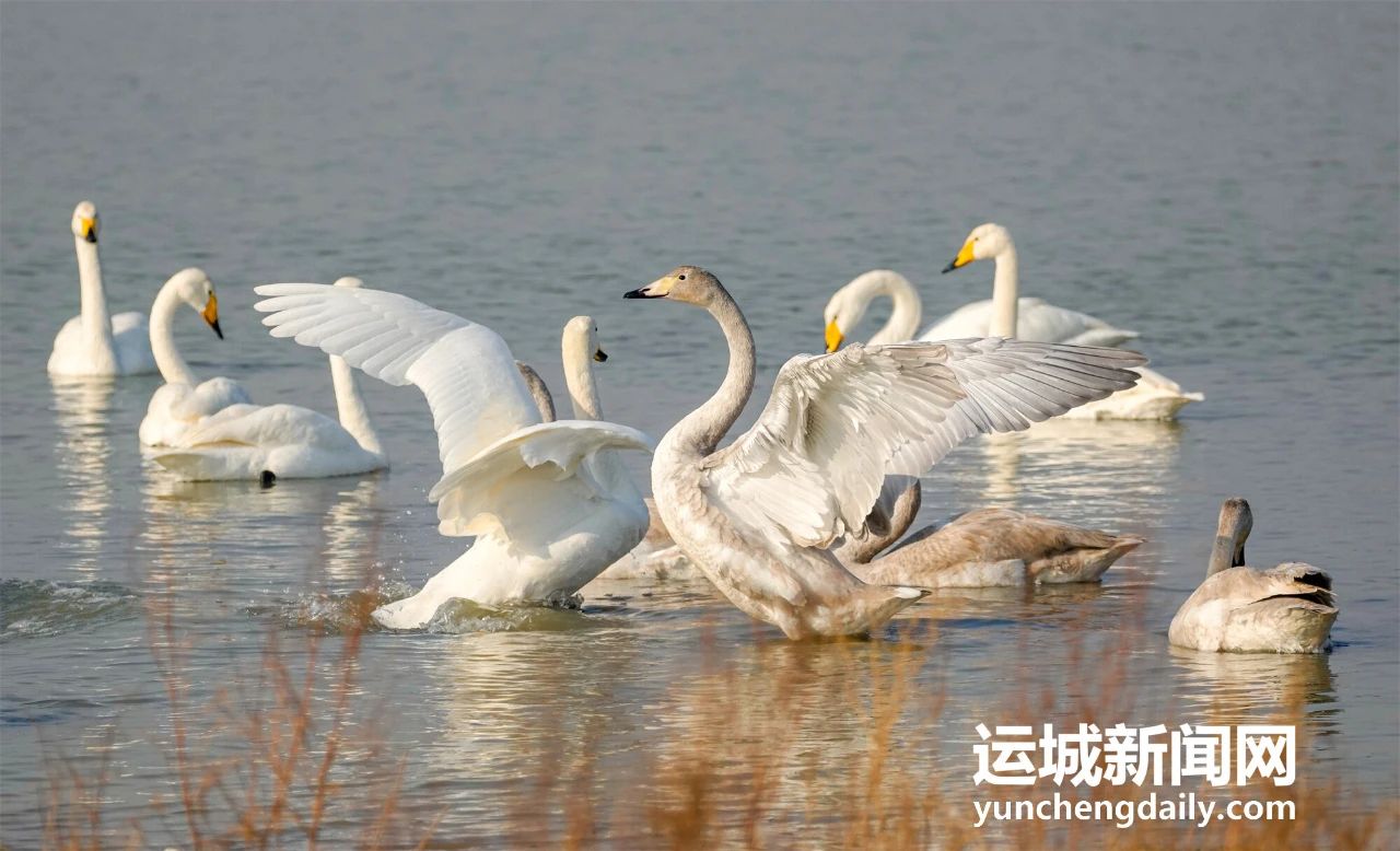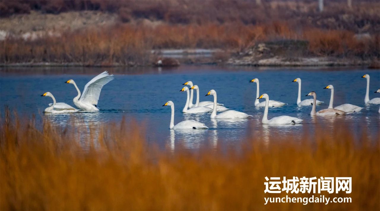 冬日時(shí)節(jié),近百只天鵝飛抵鹽湖濕地棲息越冬,它們時(shí)而嬉戲、時(shí)而飛翔,成為冬日鹽湖一道靚麗的風(fēng)景,吸引眾多游客前來(lái)觀(guān)賞。