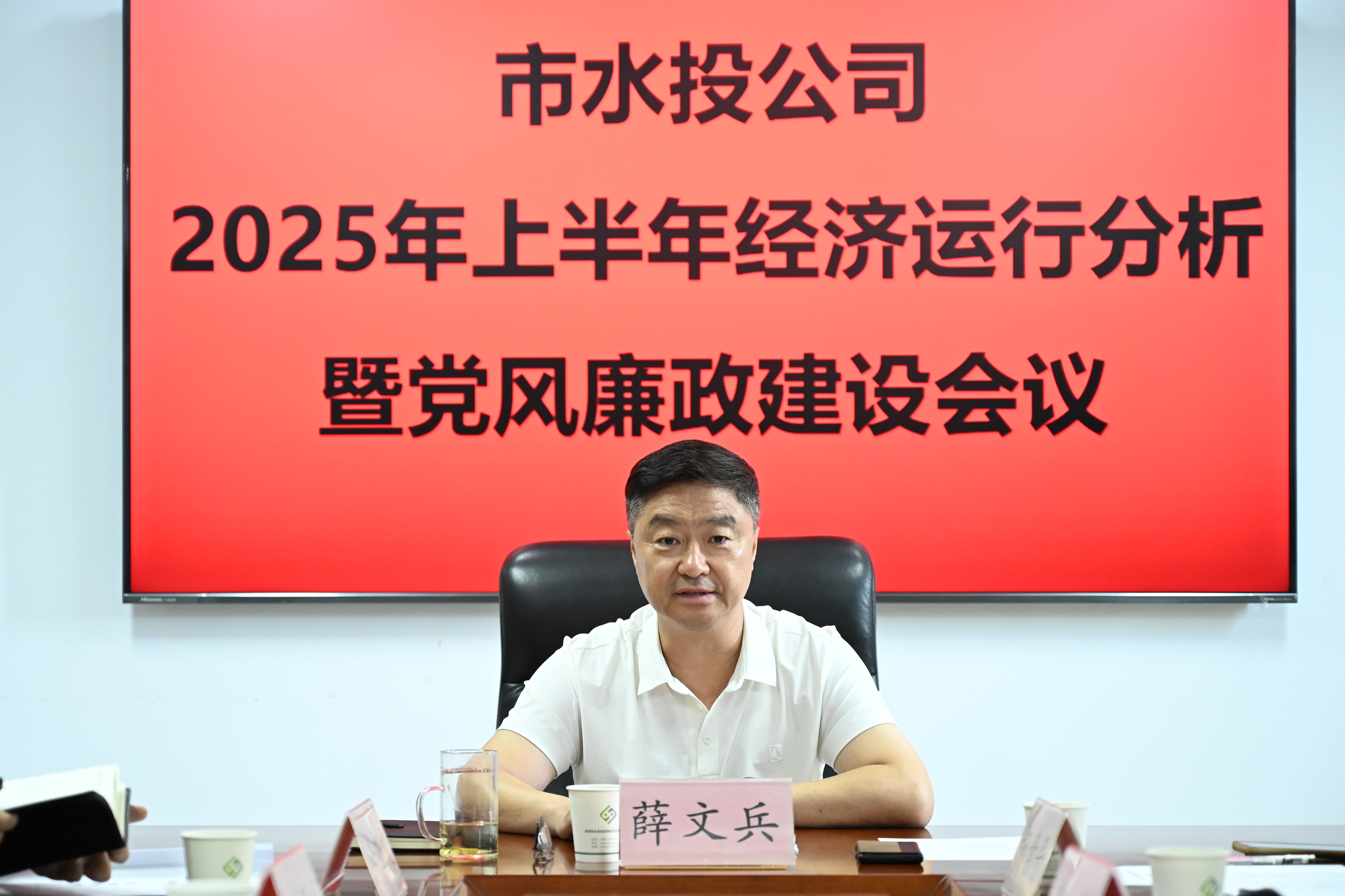 7月31日下午,市水投公司黨委書記、董事長薛文兵主持召開2025年上半年經(jīng)濟運行分析暨黨風廉政建設會議,總結上半年工作成效,研判經(jīng)營發(fā)展形勢,明確部署下半年重點任務。黨委副書記、總經(jīng)理楊素平,黨委委員、紀委書記尚曉文,公司董事郭龍,子公司班子成員、公司中層干部參加會議。相關部門及子公司匯報了工作情況。